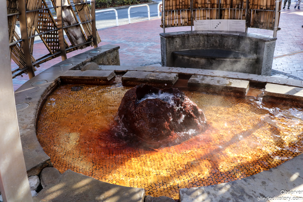 역 앞에는 손을 담글 수 있는 작은 온천도 있다