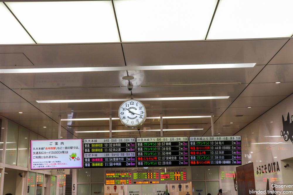 시간은 좀 걸려도 맘 편하게 오이타를 거쳐 기차를 타고 가기로 결정했다