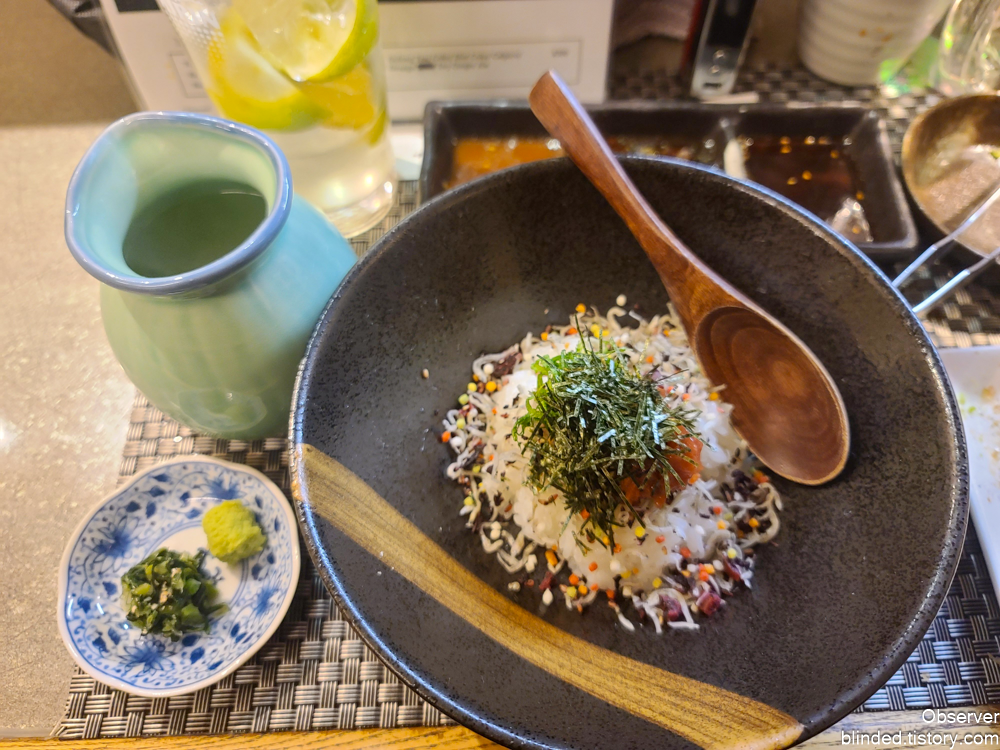 시라스와 후리카케, 김가루가 살 뿌려져있다